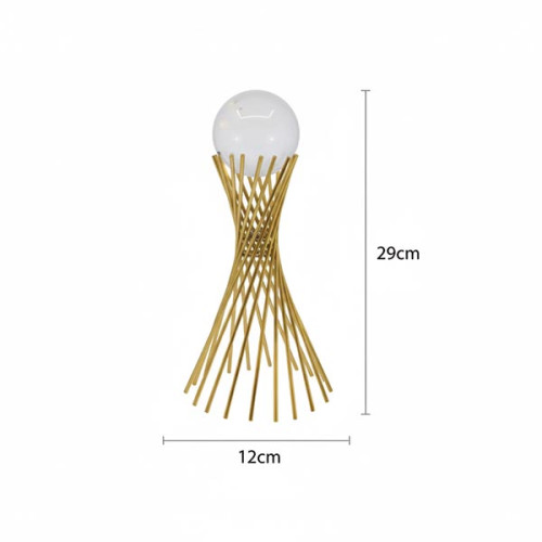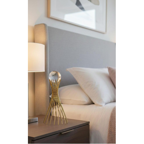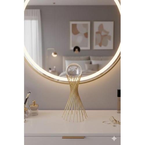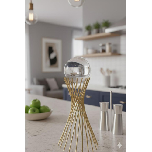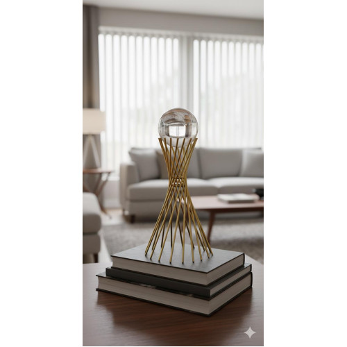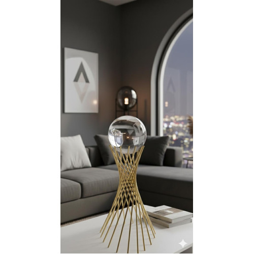 Design elegante com estrutura dourada e esfera de vidro, ideal para decoração de interiores.
