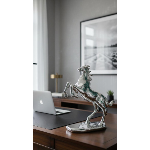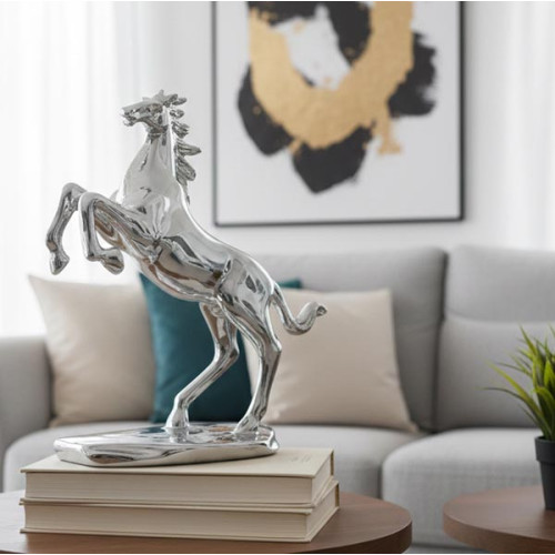 Enfeite De Resina Para Decoração de Interiores - Cavalo Prateado Inclinado - Embalagem: 1x12=12.