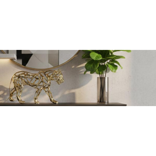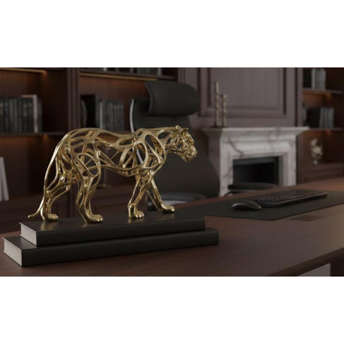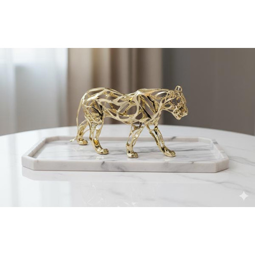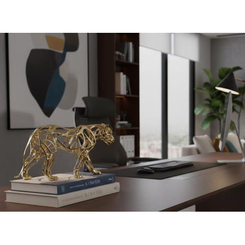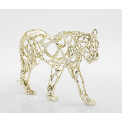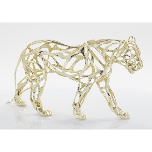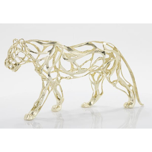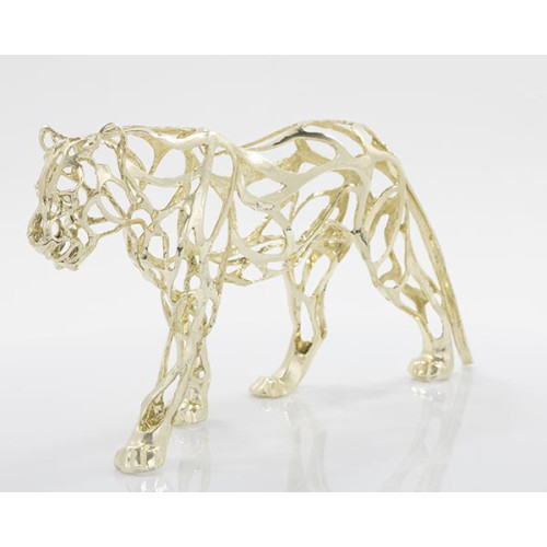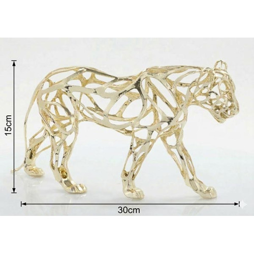 Enfeite De Metal Para Decoração de Interiores - Pantera Dourada Com Estrutura Vazada - Embalagem: 1x12=12.