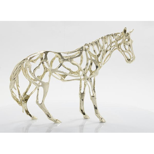Enfeite De Metal Para Decoração de Interiores - Cavalo Dourado Com Estrutura Vazada - Embalagem: 1x12=12.
