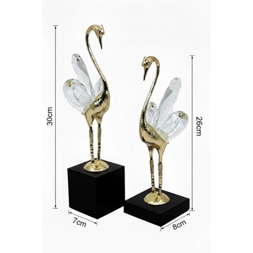 Enfeite De Metal Para Decoração de Interiores - Conjunto de Dois Cisnes Dourados Com Asas de Cristais - Embalagem: 1x12=12.