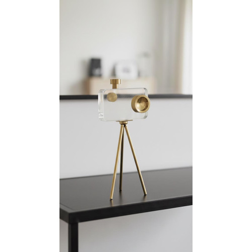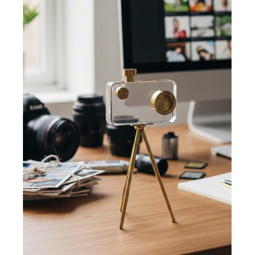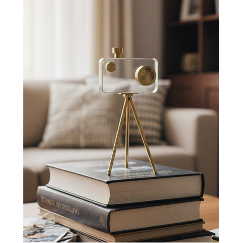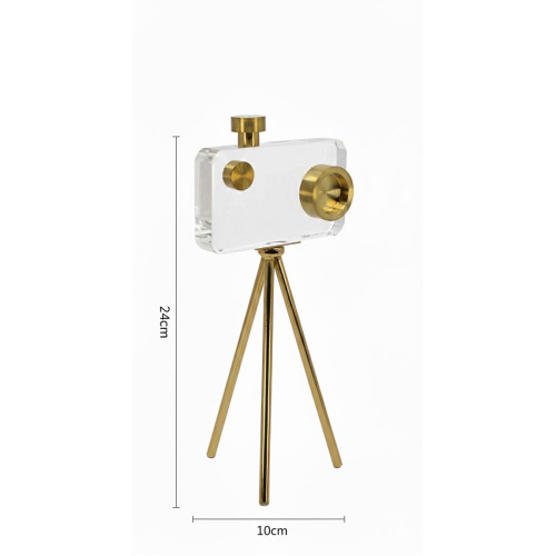 Etiquetas: Enfeite De Vidro, Decoração de Interiores, Máquina Fotográfica de Vidro, Tripé Dourado, Elegante, Item Decorativo, Versatil