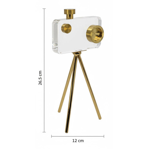 Enfeite De Vidro Para Decoração de Interiores - Máquina Fotográfica de Vidro Com Tripé Dourado - Embalagem: 1x12=12. Peça decorativa elegante em formato de máq..